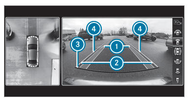 When Active Parking Assist is active, lanes 1 are displayed in green. The guide lines in the multimedia system display show the distances to your vehicle. The distances apply to road level. Side view of the mirror cameras The sides of the vehicle can be seen in this view.